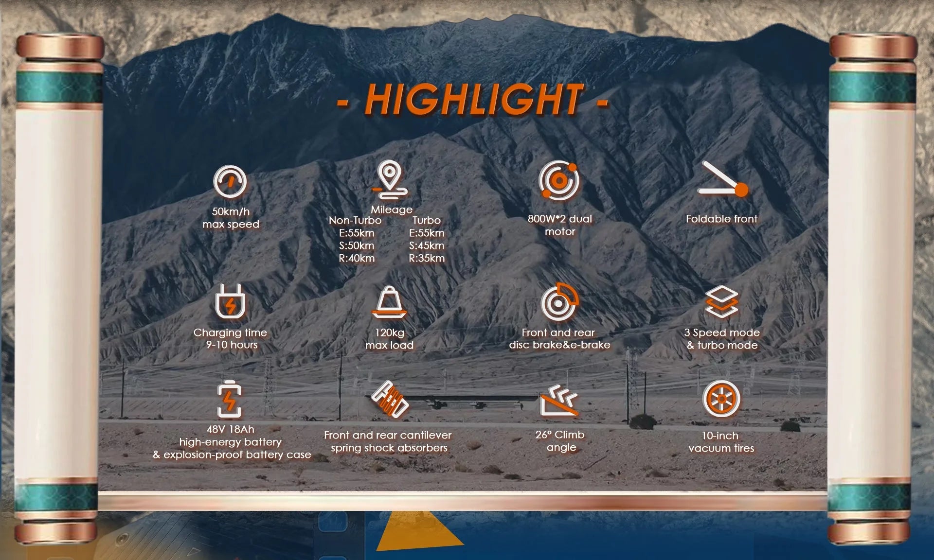 - Baterie : 48V 18Ah